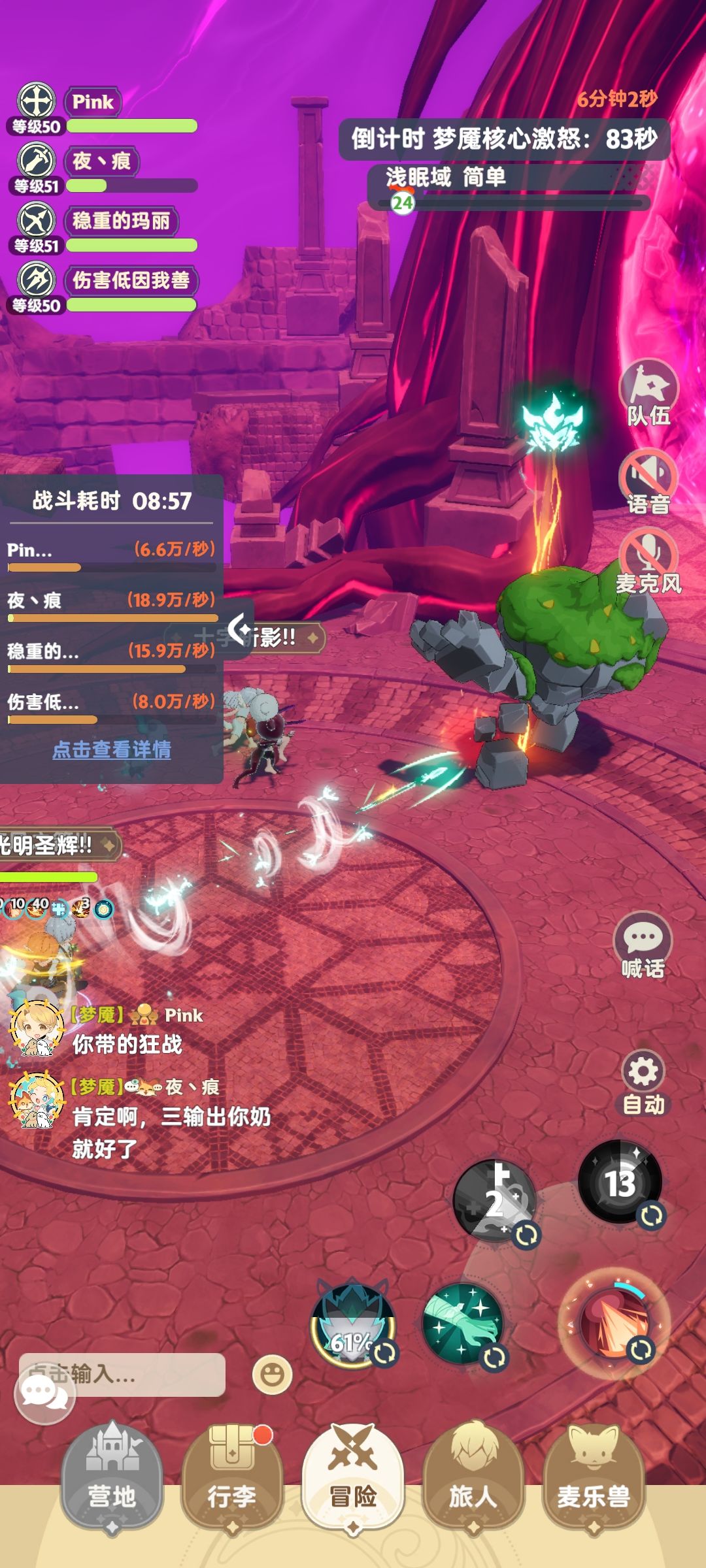 双开小号,梦魇刺客比没带输出技能的奶伤害足足高了1.4w,同比其他输出差距也就一半多一点! 打龙推图都差不多! 刺客太好玩啦!#出发吧麦芬 练度如图,应该算是小号正常练度吧 月牙是紫的 返璞归真蓝 试了下跟双橙色的风魔+触类旁通 伤害没啥差别 没玩之前感觉低练度职业平衡应该差不多,开了眼了 是我哪里弄的有问题嘛