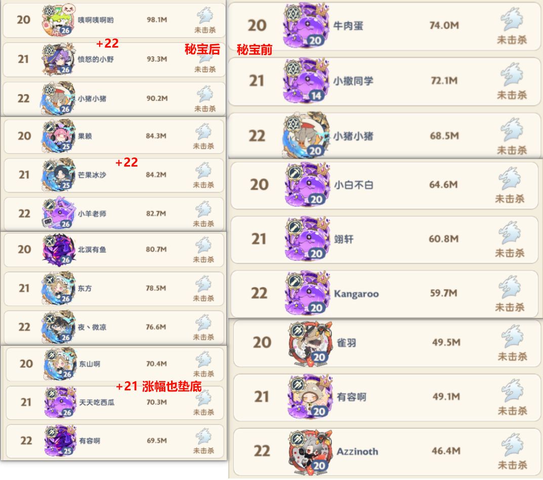 【龙榜对比】开秘宝前后对比,刺客涨幅垫底