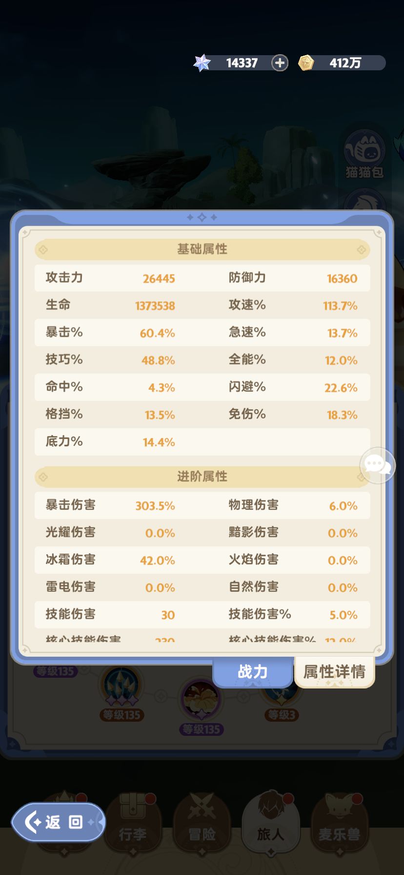 分两套BD,一套用来推主线,和打梦魇,这种主要依赖群伤清小怪,效率高。另外一套,主要下副本,打龙。下面放出BD。 二转群伤:天赋左右左左右,活力60,临场38 二转单体:天赋左左右左左,活力60,临场38 这是我的属性图。