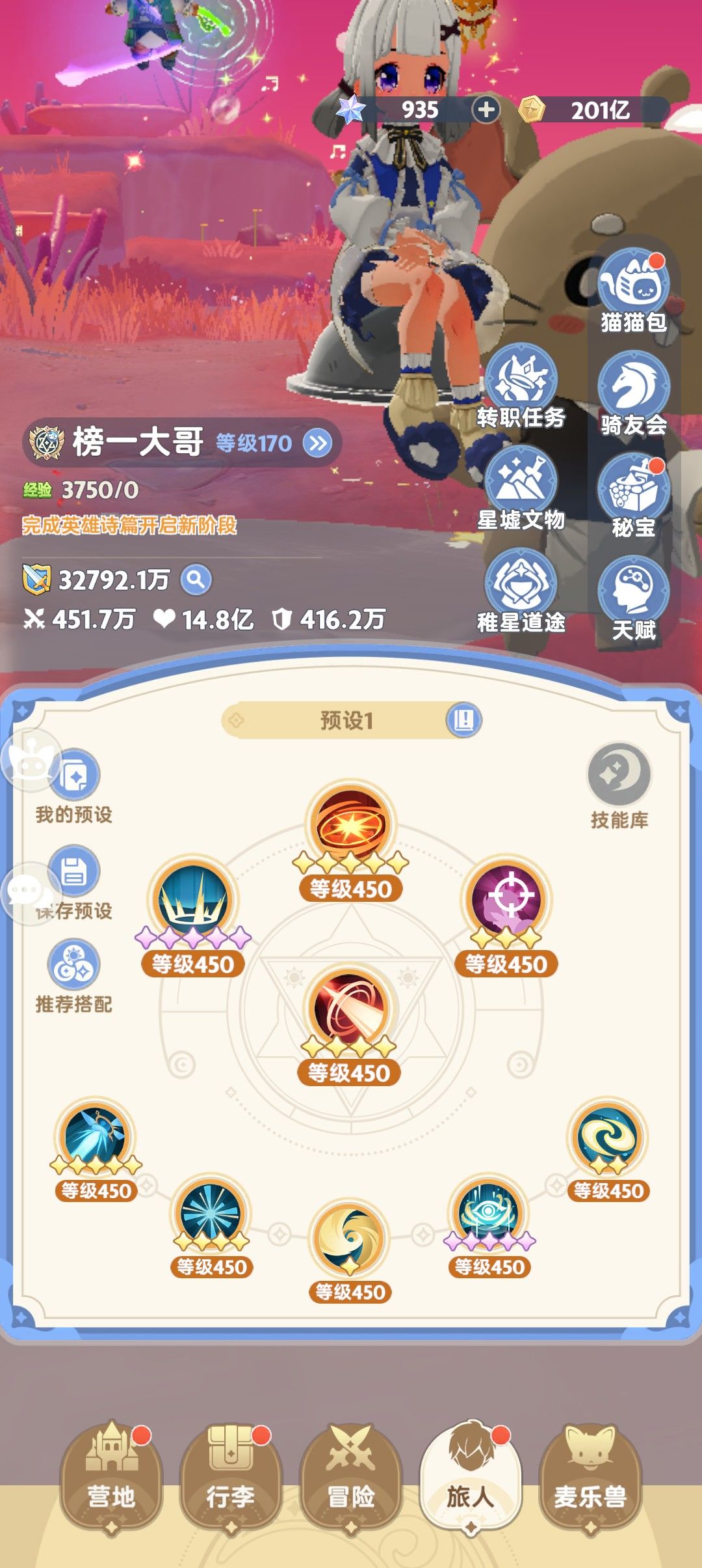 声明:皆有赖于国际服诸君开创前道,非我一人之功。 技能 天赋 左线:自然学派左+加速冷却+自然领域 右线国际服表现不佳,只用左线。 宠物及骑宠 主宠选择红五or红三骨鹄咕(六转92级后推图开新宠) 特技选择:阵羽+变脸+ 藏针或兔特(金闪闪充足的可上15级狐特/12级狗特) 主骑选择斑豹(通用)或信风蝶(高面板适用),后期使用天马主骑。 招式 攻击位:三爆伤 防御位:生命、防御或免伤 复合位:命中