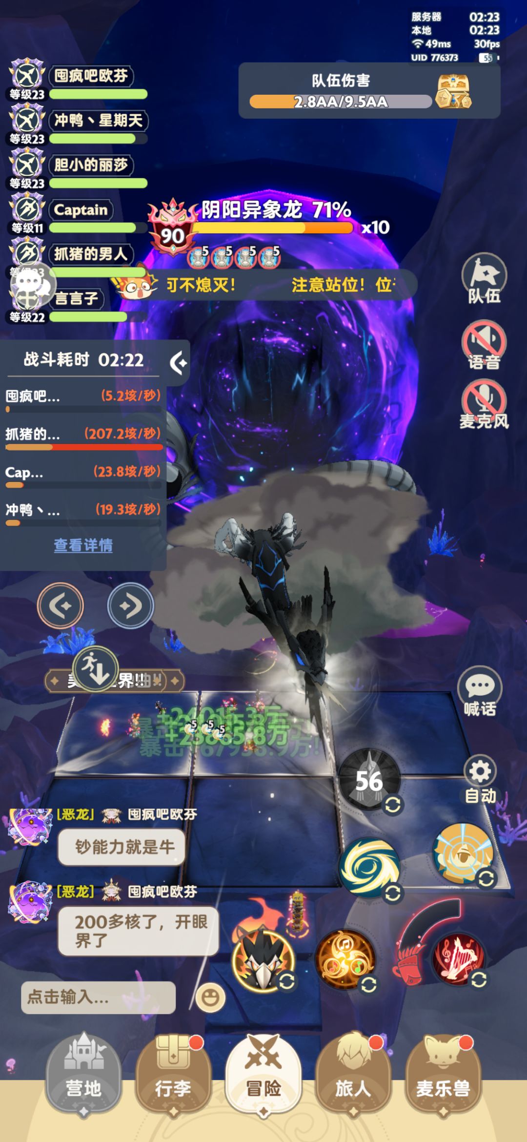 机制如下,进去站一起挂机就能吃满增伤机制。如果没有大奶或者扛不住伤害,建议分开站同一行三格,一格两个人挂机。 实测这个机制是从第30秒开始生效,持续30秒,冷却20秒,综合50秒一轮,骨鸦完美适配。这条龙是从3分25秒开始读条,3分30秒结束。 七转刺客打法如下: 常规打法是进场觉醒自动,生惑手动,觉醒开始以后关掉觉醒自动,打20秒小觉醒,等25秒再开觉醒和生惑。 技能的话,17冷却缩减及以下8