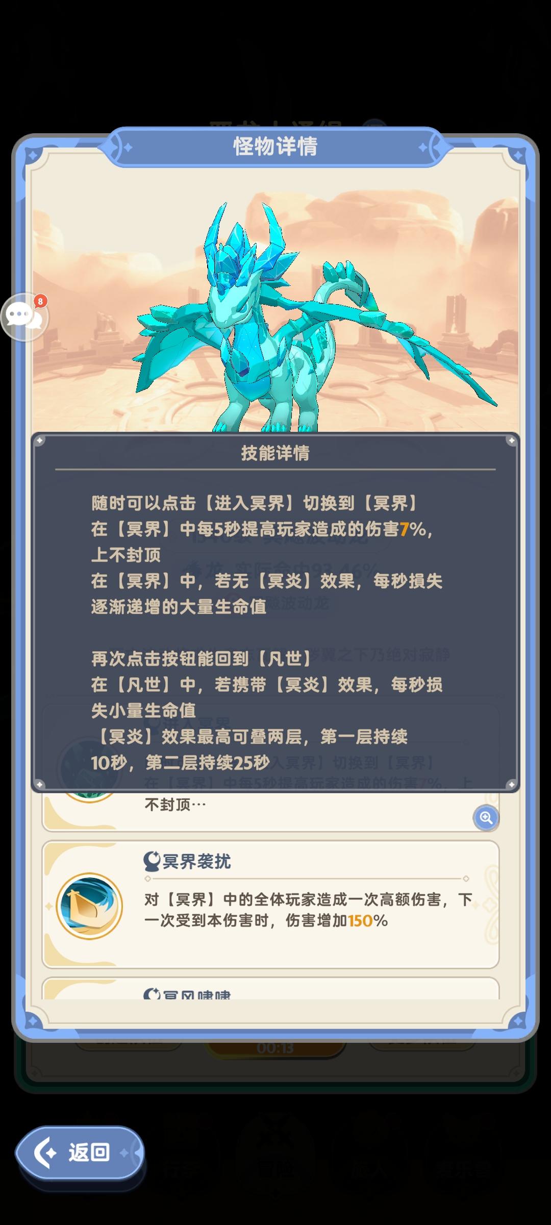 仍然是获取冥炎效果进冥界增伤,但是这次冥炎效果的样子变成了头顶的蓝色🔥样,获取冥炎的方式也变了些。获取冥炎的方式主要是boss释放[冥火粼粼]和[冥风啸啸]时候获取。开局第一个冥火可以在现世吃也可以直接进冥界吃,后续第2-3-4次冥火都需要提前几秒进冥界吃boss的[冥火粼粼],才可以获取冥炎状态,在冥界增伤。[冥风啸啸]时,躲开技能范围,技能范围会取消你的冥炎效果,获取冥炎的方法是先去绿色