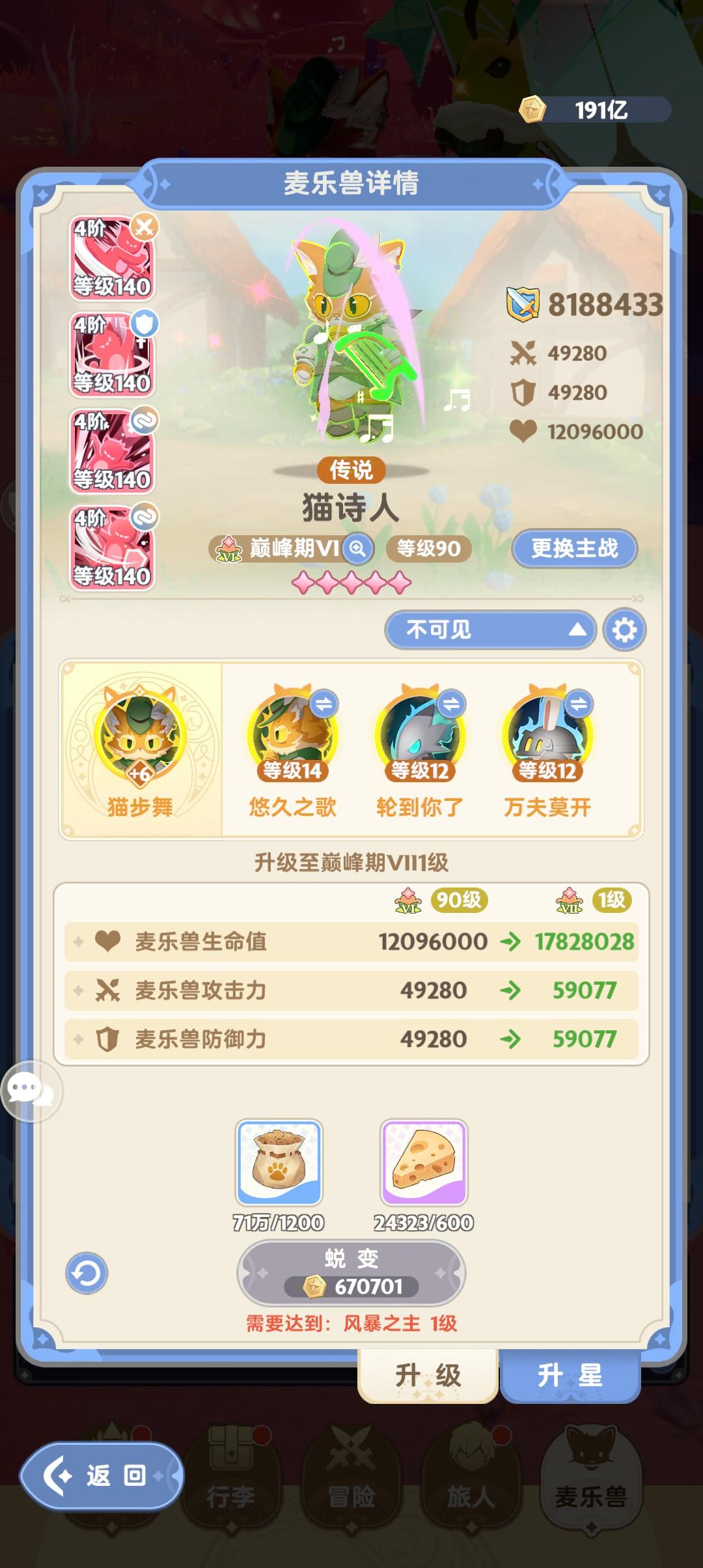 卡级第260天以后资源向技能倾斜,冲刺全5星技能