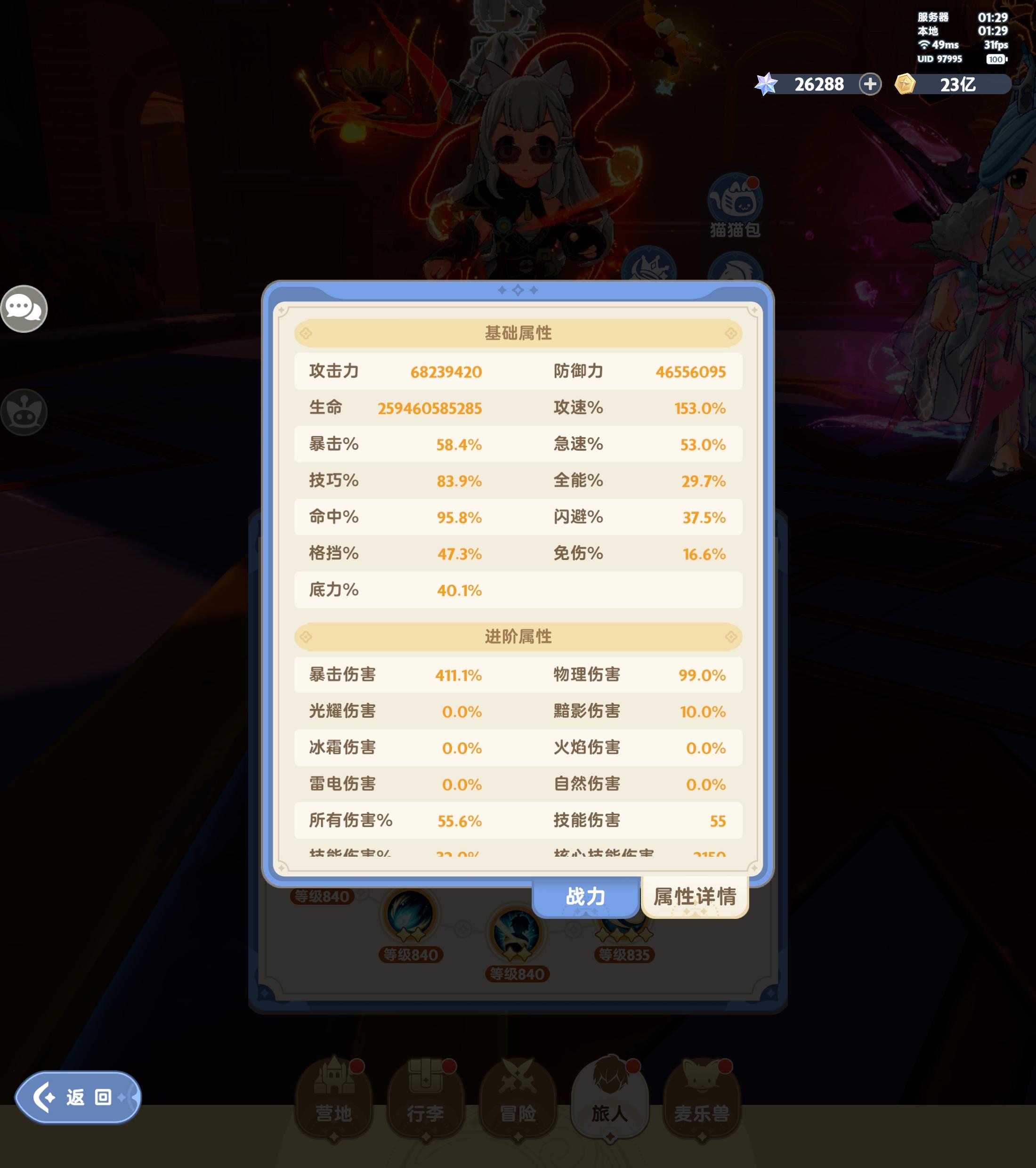 中间有两个多月没玩,好不容易追上大部队,感觉伤害差别人一大截,求大佬给看看调调号,今后该主要提升什么属性,白嫖党一枚。先在这里谢谢了。
