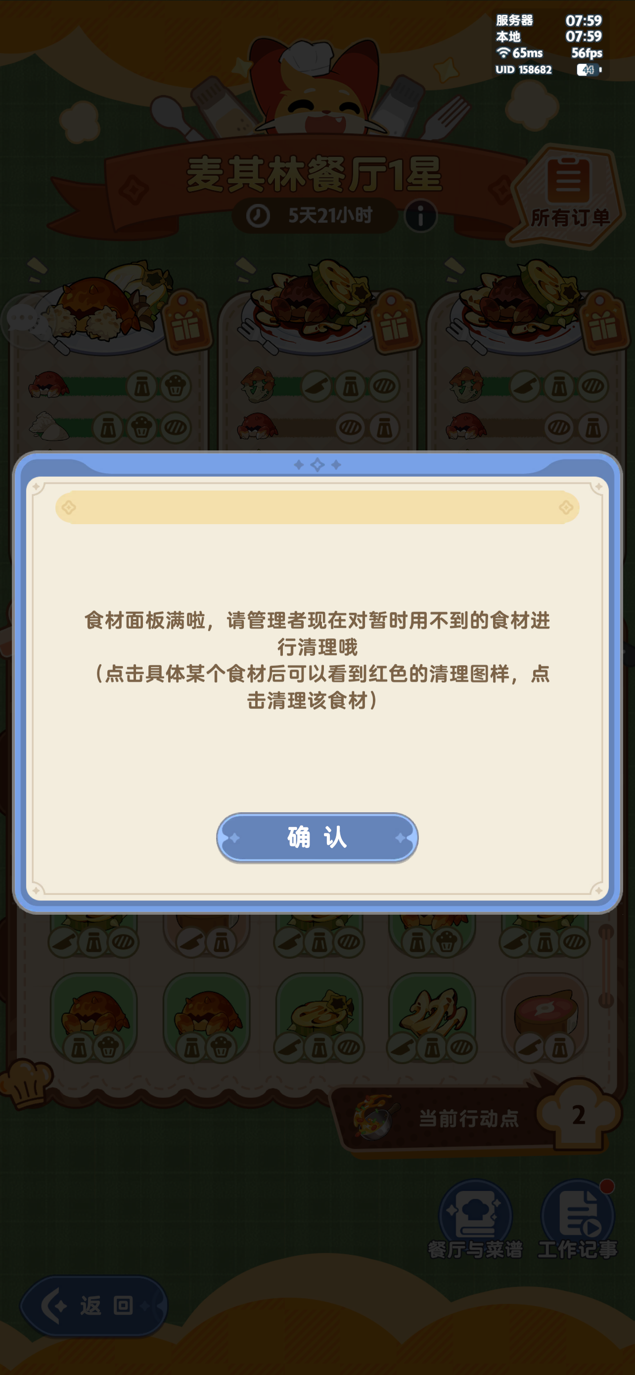 摆上去那最后一坨鱼肉绝杀!!!你ch能不能改成团长/管理员删除菜品返还行动点然后在给那暂时用不上的鱼肉(其他菜品)上把管理员可选项的锁类似装备溶解这样的锁!???真的很无奈啊一个活动这样子疯狂塞车….