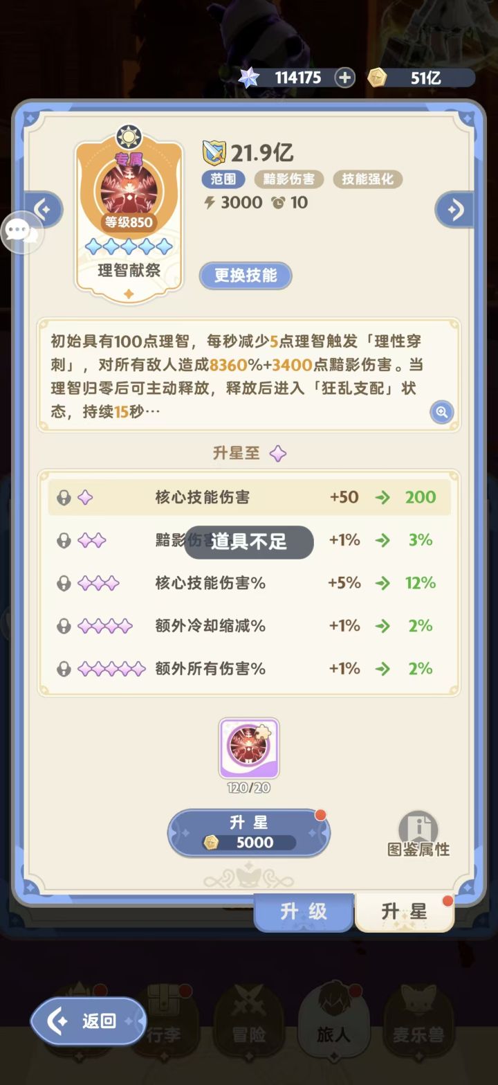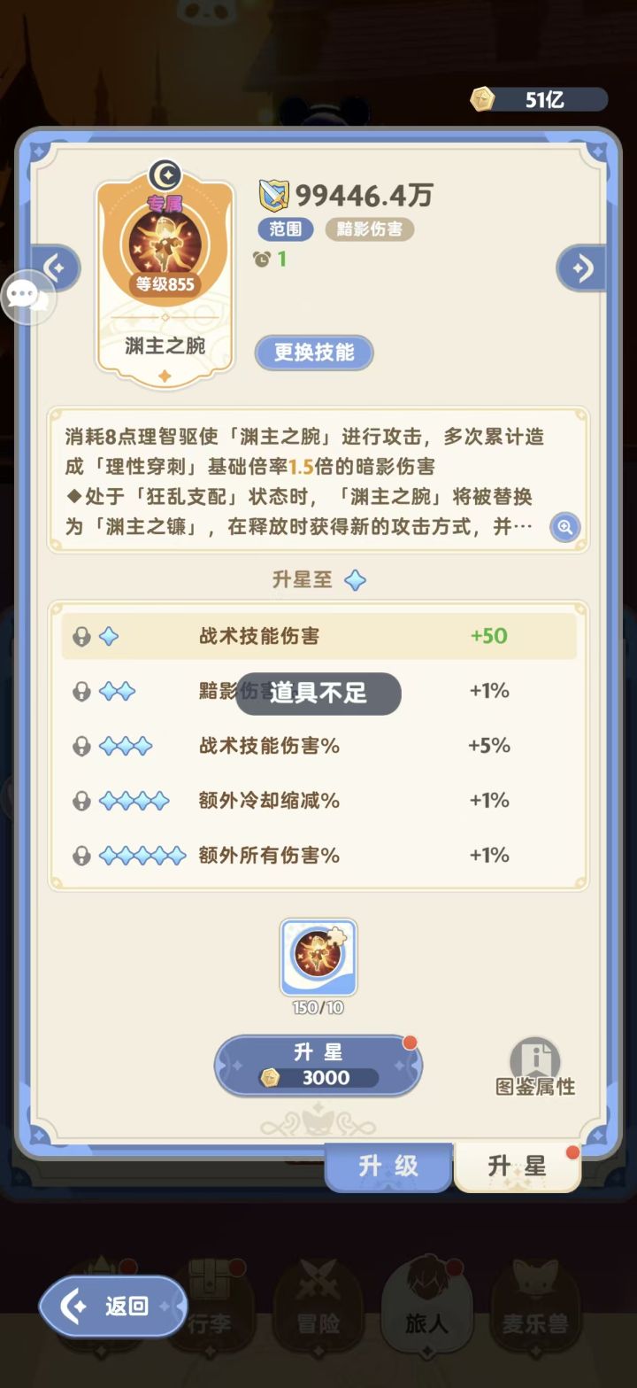 请教一下各位大佬,我转职后抽到了橙色品质技能,换上之后无法升级,提示道具不足是出现BUG了吗?