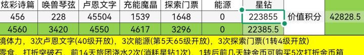 开服套装大玩家终于八折复刻了...算了算抽满一套需要73抽,抽完剩余7抽。(相当于66抽一套)比普通典藏95抽开抽,抽完剩余5抽(相当于90抽一套)...省了不少耶~
