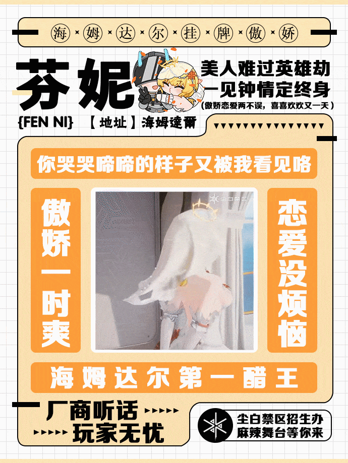 几天时间社区早到了严重的质疑和破坏,包括但不限于恶意解读信息阴谋论,动摇大家对狸花猫的信任。现在也到了建设社区的时候了,分享两张尘白招生图#尘白禁区 #尘白禁区入坑攻略