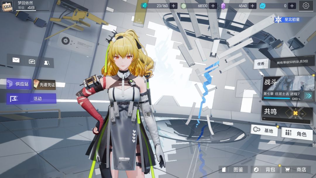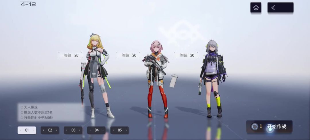 先叠甲,老咖啡店长了(还在玩双生),月卡玩家,PC端打高难,用手机清体力,不看剧情,纯强度党,建模立绘过得去就行。玩了5天,前2天狠肝,第二天拿到自选5星冬日阻击,也把专武抽出来。第三天开始打其他玩法,第四天开始就养老了,提升练度,建议每天买2-3次体力。 主线 现在来聊聊这游戏,主线真的很简单,我是40发新手池出的皇冠,所以把4星狮子(攻击白值比5星高挺多)下了,其他两个送的人物,继续练来推图,