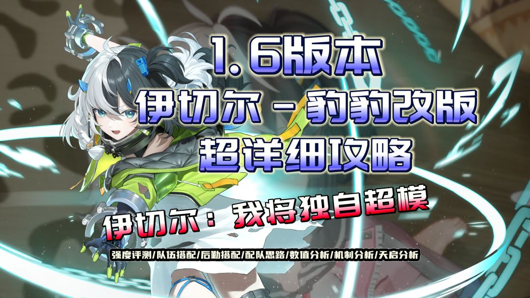 伊切尔角色有限数据展示与讨论(1.6版@伊切尔-豹豹调整后) 省流: 【伊切尔-豹豹】这一角色和她的专属武器【镭射风虎】组合(调整后)是一个“吉祥物”,奶量和增伤确实比四星角色强。 【伊切尔-豹豹】的后勤词条建议:攻击和同调,106同调词条约等于8%攻击词条。 1.免责说明 仅代表个人帐号角色强度情况,技能数值与计算公式仅用于游戏讨论;仅例举了个人操作(手残)情况下,精神拟境通关时间;没任何主观结