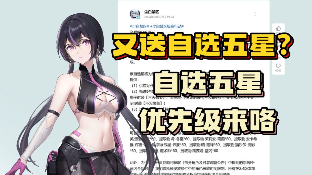 如题 在简单体验完后,稍微讲讲选什么角色比较好(不容易拖大家后腿/打更高的贡献)。 ★先说结论: 萌新方面——如果你等级最高的角色都没有70级,那么就直接选试用的【辰星-云篆】 如果并非萌新——无脑选择大琴诺【琴诺-悖谬】 ★然后说说原因: 推荐萌新选辰星的原因是——无论如何,这是一个3+1的限定c,而且是官方满配小毕业词条的。 相比萌新自己等级都没法拉起来的角色,大概率表现要强很多。 推荐非萌新