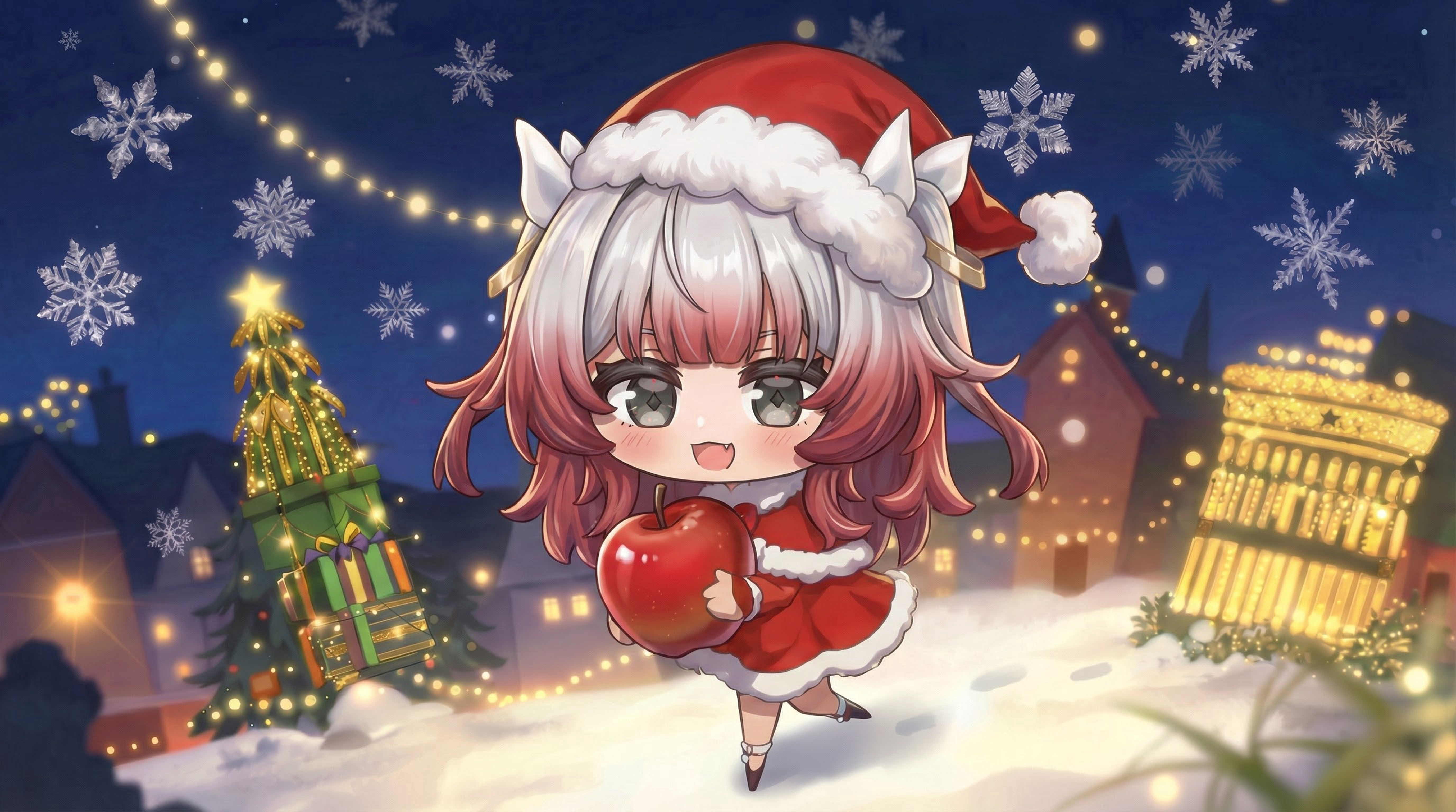 窗外点点星光,屋内铃铛作响。霓虹闪烁的圣诞树下,少女们纷纷换上华丽的衣装,将心中的爱与甜蜜为心爱之人一一献上~“嘿嘿,分析员快看,这里加入了卜卜的专属魔法,好好当作贴身的护身符使用吧!”“这种时候还是有点害羞……但比起害羞,更希望分析员能收下我的心意喵。”“达令,我挑了好久……不知道这个颜色你会喜欢吗~”少女们心中最完美的礼物,就是有分析员陪伴的时光。感受着平安夜浪漫的氛围,收到少女们精心
