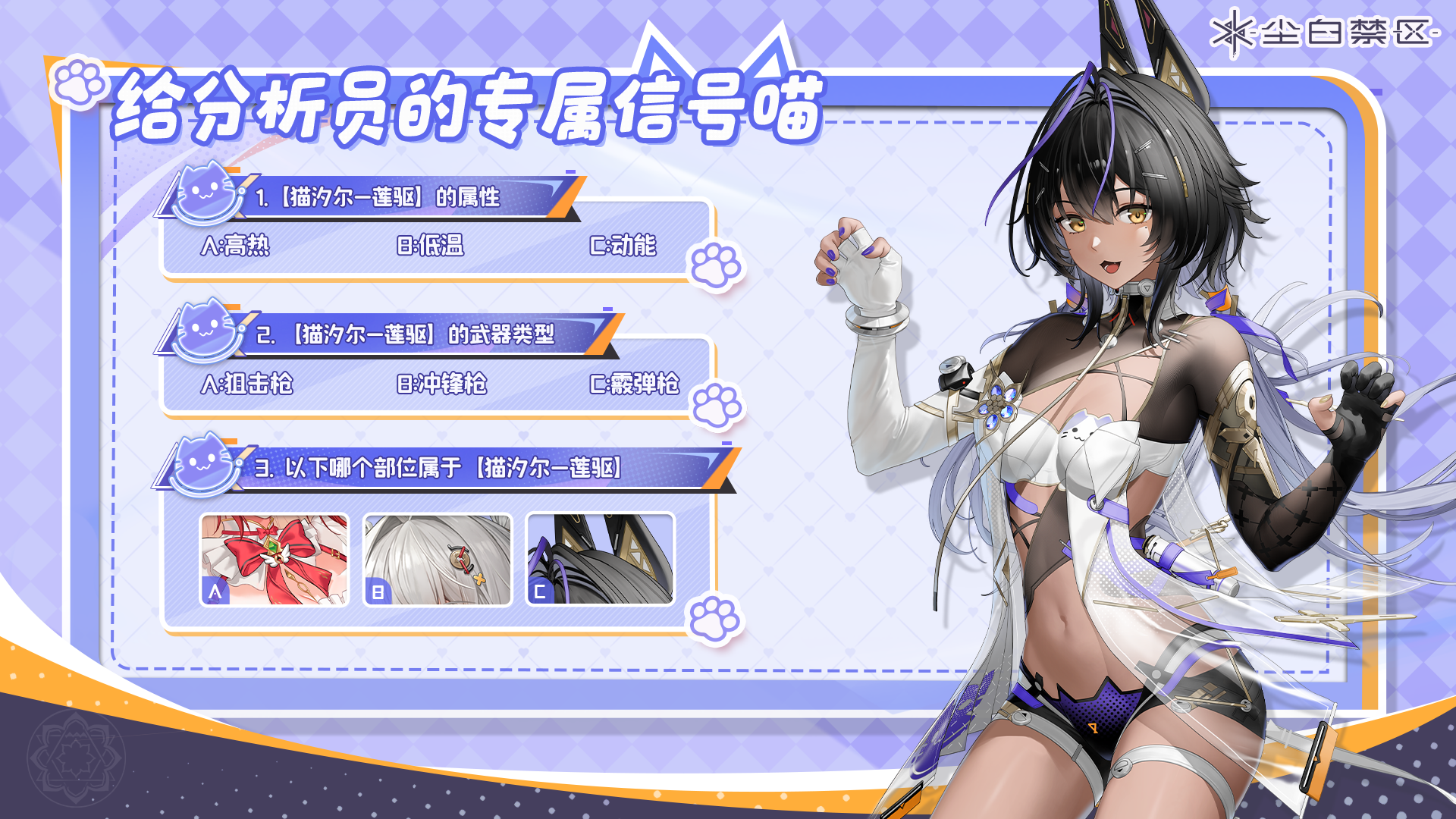 追着飘来飘去的东西跑,是猫才会做的事。而能完全吸引我注意力的,只有分析员你哦。分析员,我更想和你一起,去真实地感受这个世界——不只捕捉美好,也触摸所有的温度与真实。情感信号已抵达——分析员这次可要好好接住猫猫的信号了喵~》》》有奖活动《《《【参与方式】在本帖评论区中留下分析员的答案,即视为参与成功!【活动奖励】活动结束后,我们将在评论区随机抽选5位分析员,各送出【随机角色泳装系列色纸