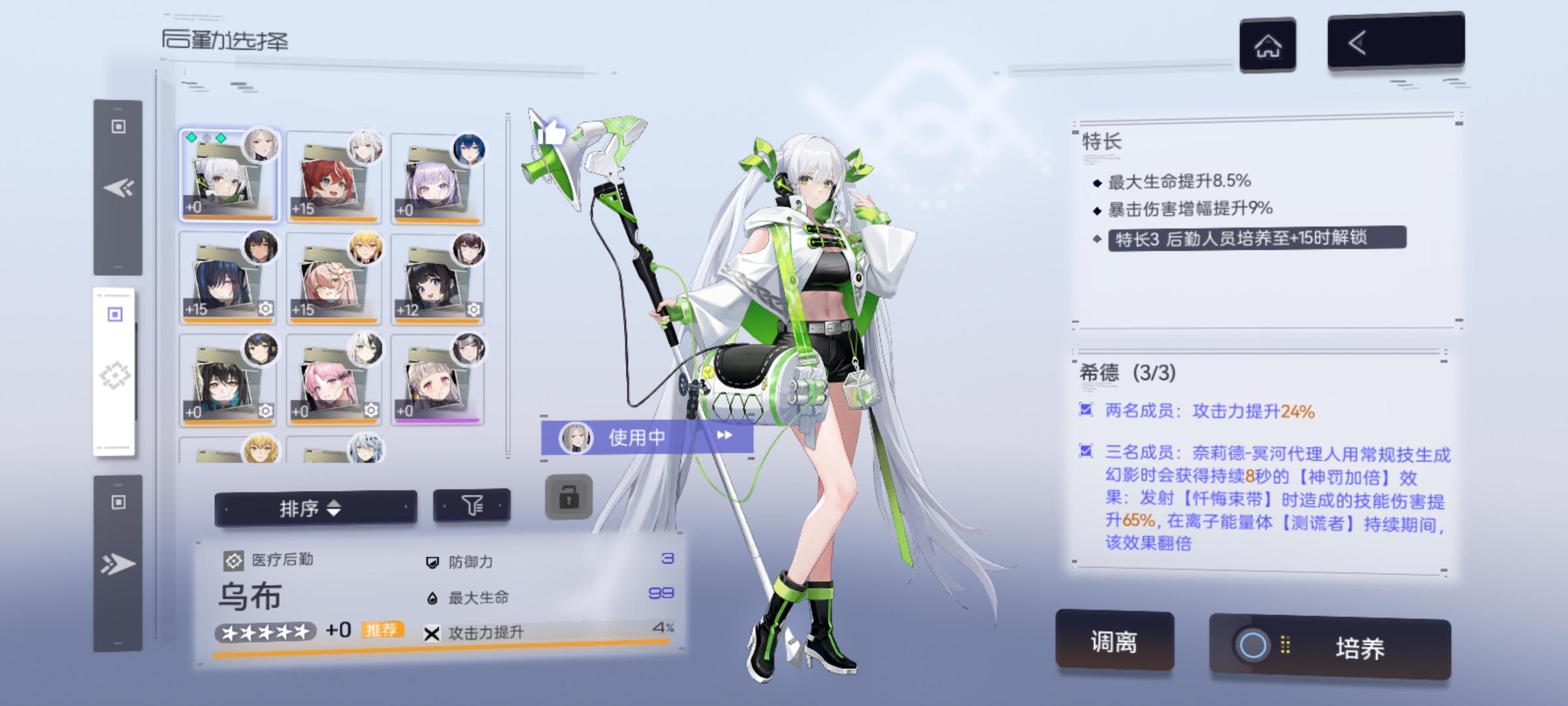 奈莉德后勤怎么选择啊,打算当特异主C培养。