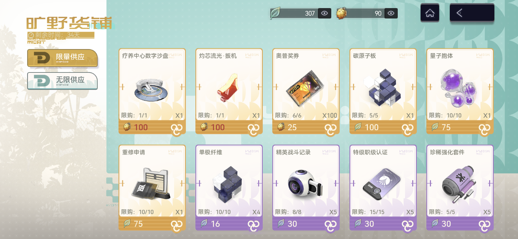 全勤分析员一句话省流版:限量供应全部搬空以下面向非全勤分析员限量商店具体分析:首先如图把天启者共鸣誓约(抽卡券)5张换了。然后升角色缺什么优先换什么。比如抽了卜卜但不抽专武那武器松纸剪影要换,角色和武器升级过程缺东西了优先换。第二档为橙色物品,较难获取,都建议优先。第三档为永远缺的芳烃塑料(蓝色方块),光纤轴突(紫球,日常做直播激励的可以不优先),都可少量屯点。第四档为各类资源(去除职级认