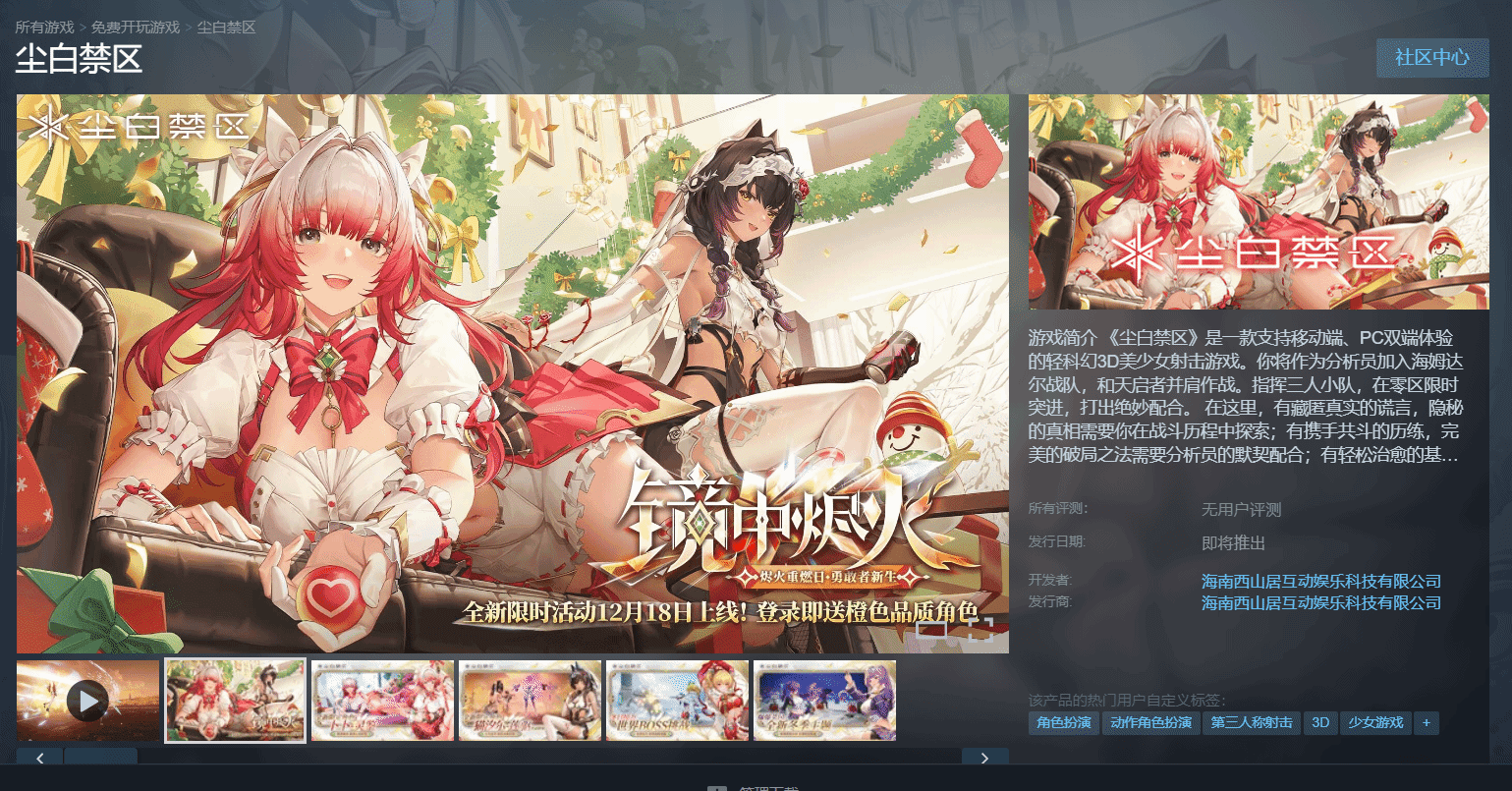 《尘白禁区》Steam国区页面解锁引爆玩家讨论大的又蹦出来啦家人们!由西山居互动娱乐发行、过去曾引发“逆增长奇迹”的轻科幻3D媚宅向第三人称射击游戏《尘白禁区》,于近日再次吸引玩家们的目光,引发玩家们的热议!原因系本作在Steam国区商店页面的变化所致据悉该作早在过去就已登陆Steam平台,但或许受限于游戏内容的限制,本作一直以来没有对国区开放,所以此次细心的玩家发现的《尘白禁区》Steam