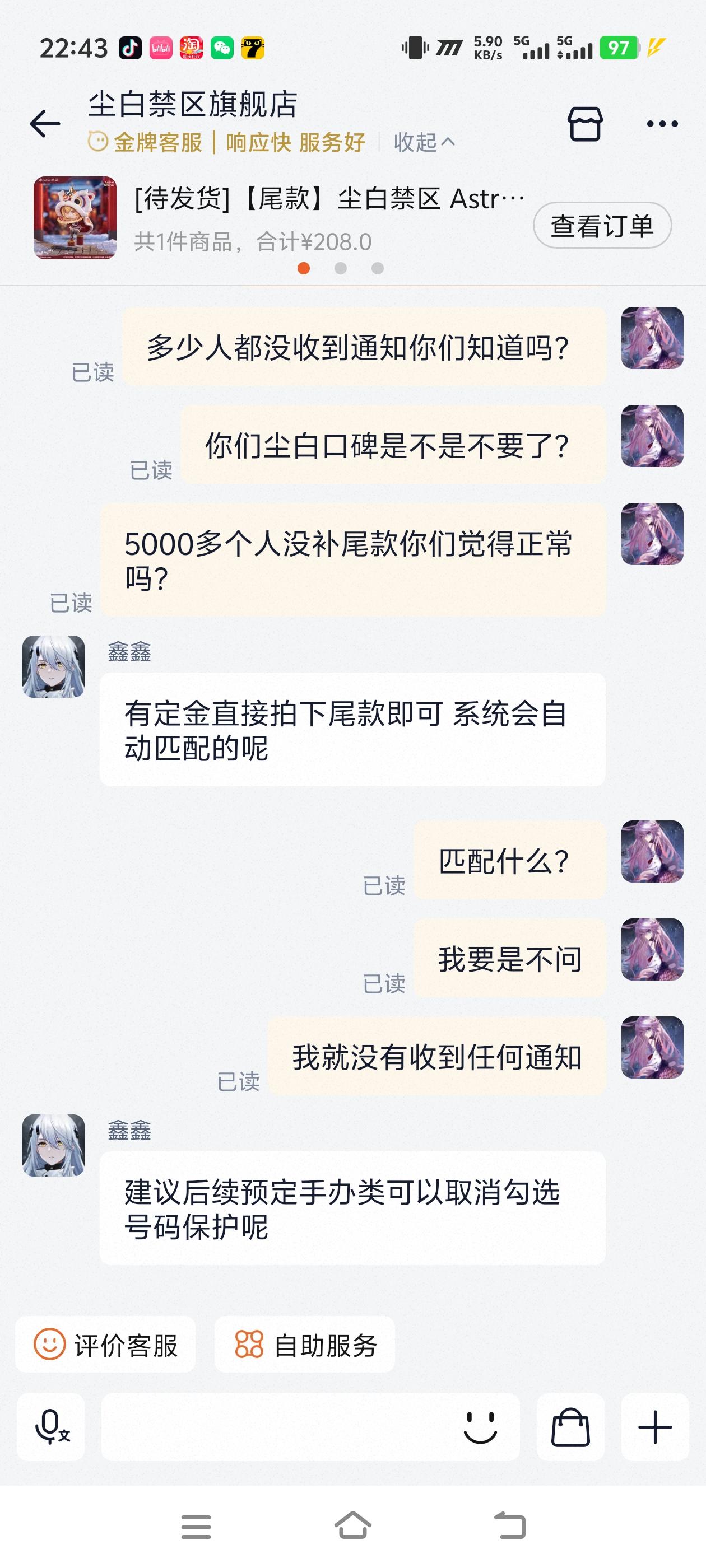 我和他们淘宝客服反应,完全就是人机,定金的时候开虚拟号保护就收不到短信,现在唯一开尾款就是这个舞狮,要不是我看到别人到了我都不知道补尾款,我去问客服才给我发的链接,现在是定金8000+,尾款一共才有3000+补齐,时间是一个月,1月22号就开启了。我要求客服解决短信问题他就给我扯皮。交定金的兄弟赶紧去找客服要链接