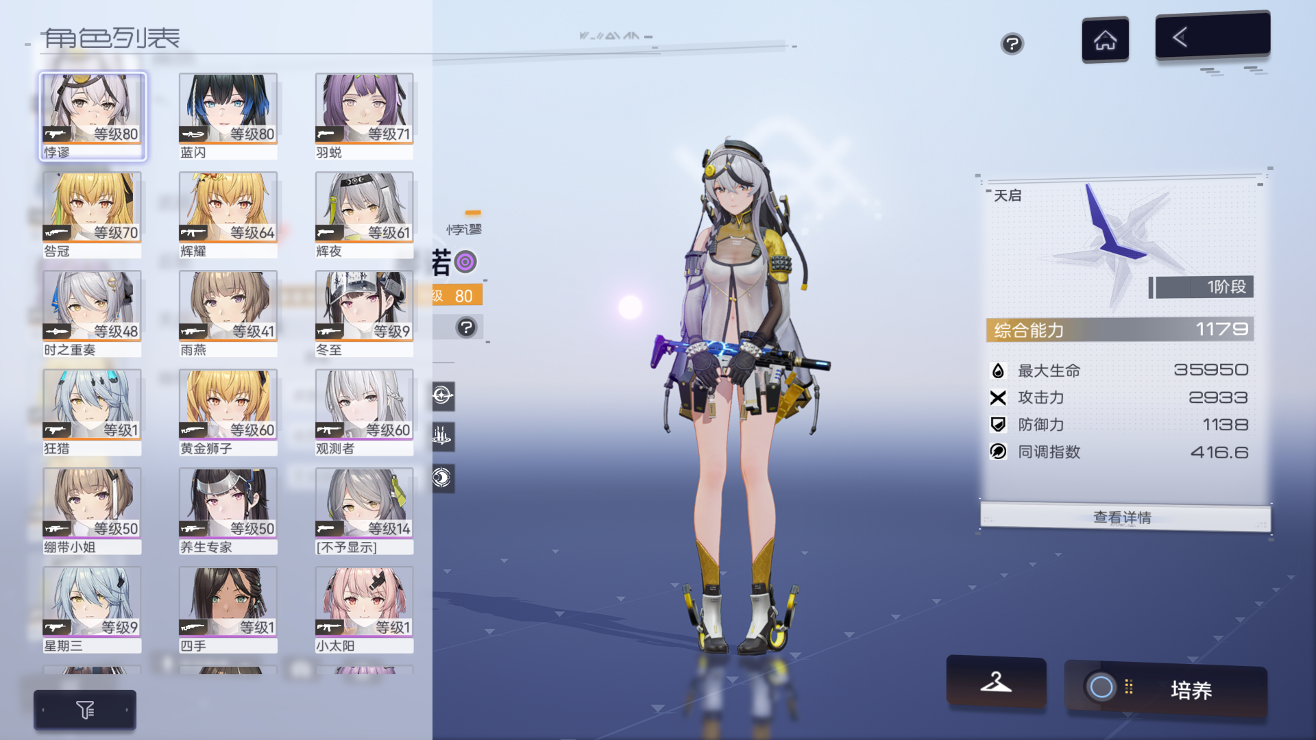 手机端是否出现不清楚,电脑端需要有安卡,然后显示的需要从默认初始的小安卡切换成大安卡大招形态 ,然后试用的安卡要点到详情培养界面,然后后勤天启什么的点进去,返回后再点拥有的安卡,就有概率没切换显示拥有的安卡的角色界面,直接跳转显示到图中的bug界面了#尘白禁区