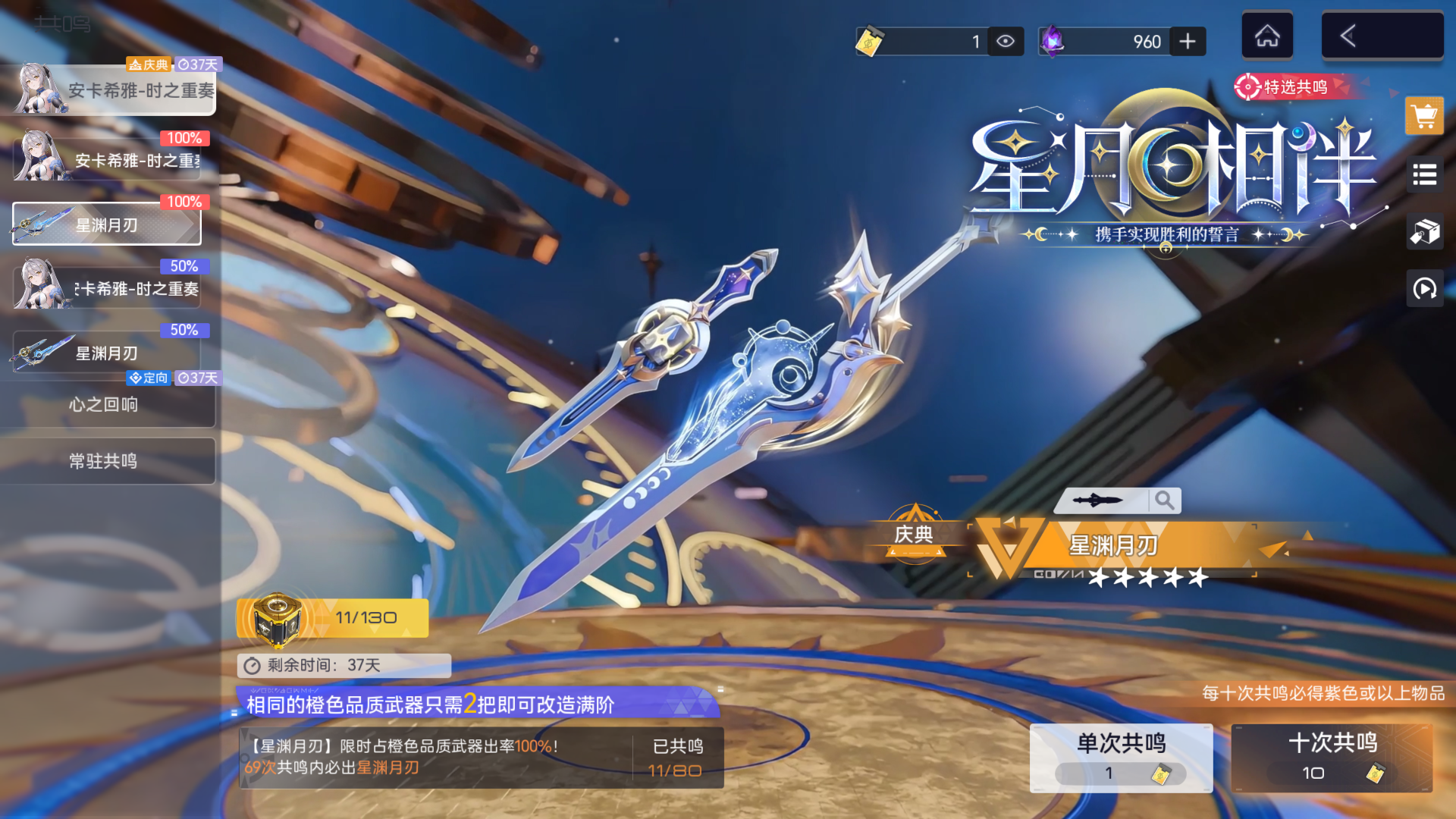 听说自选有婚辰,提前抽一下专武,终于欧一次了,之前婚卡歪了两次