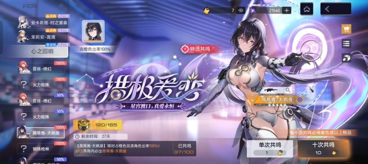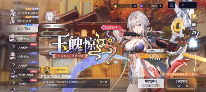 忘了问一个最重要的问题了,我的全部角色如图,我想给狂诗补个苔丝当辅助,增加点伤害,大伙觉得有必要吗?如果有,需不需要补个苔丝专武?我看专武写的是苔丝在场下时,场上角色增伤12%。第二,另一个队伍的c我是选大安卡还是琼弦?第三还有天鹅座是啥定位?