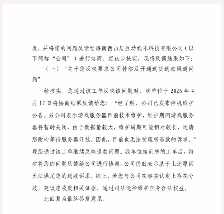恐怕尘白已经要彻底成为过去式了,国产游戏玩着真是一点安全感都没有,就算不是被整改,运营商跑路他甚至不用负法律责任。在老外的市场环境里,别说你氪金账号不想要了可以卖了回血,游戏公司要是偷摸删道具估计都能起诉他侵犯个人虚拟财产,而且极大概率胜诉且别管市场监管会不会对他巨额罚款至少还得赔你钱,看看国内算个什么事