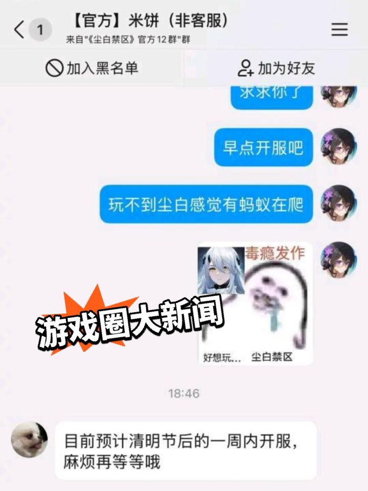 #今天游戏圈发生了啥 #资讯评论员 #尘白禁区 3月19日,在经历了长达半个多月的失联与全网静默后,尘白禁区玩家社群终于等来了一丝确凿的官方声音,据多个玩家社群流出的截图显示,游戏官方运营人员米饼在回复玩家询问时明确表示项目组将尽量争取在四月初开服,并提及生日贺图已经反馈社交媒体也会恢复更新这短短一句话,对于自3月2日深夜游戏毫无征兆地进入无限期维护状态以来,每日在焦虑与期盼中煎熬的玩家而言,