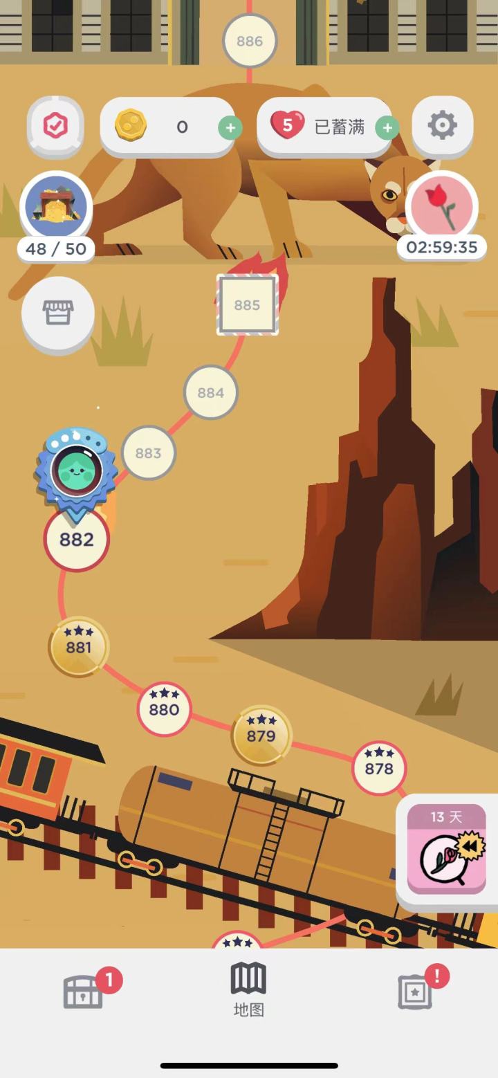 之前玩到1600卸载了一次,后来再下载就要重新开始玩了好在这个游戏道具多,还可以看广告,两个多月就轻松玩到2500了