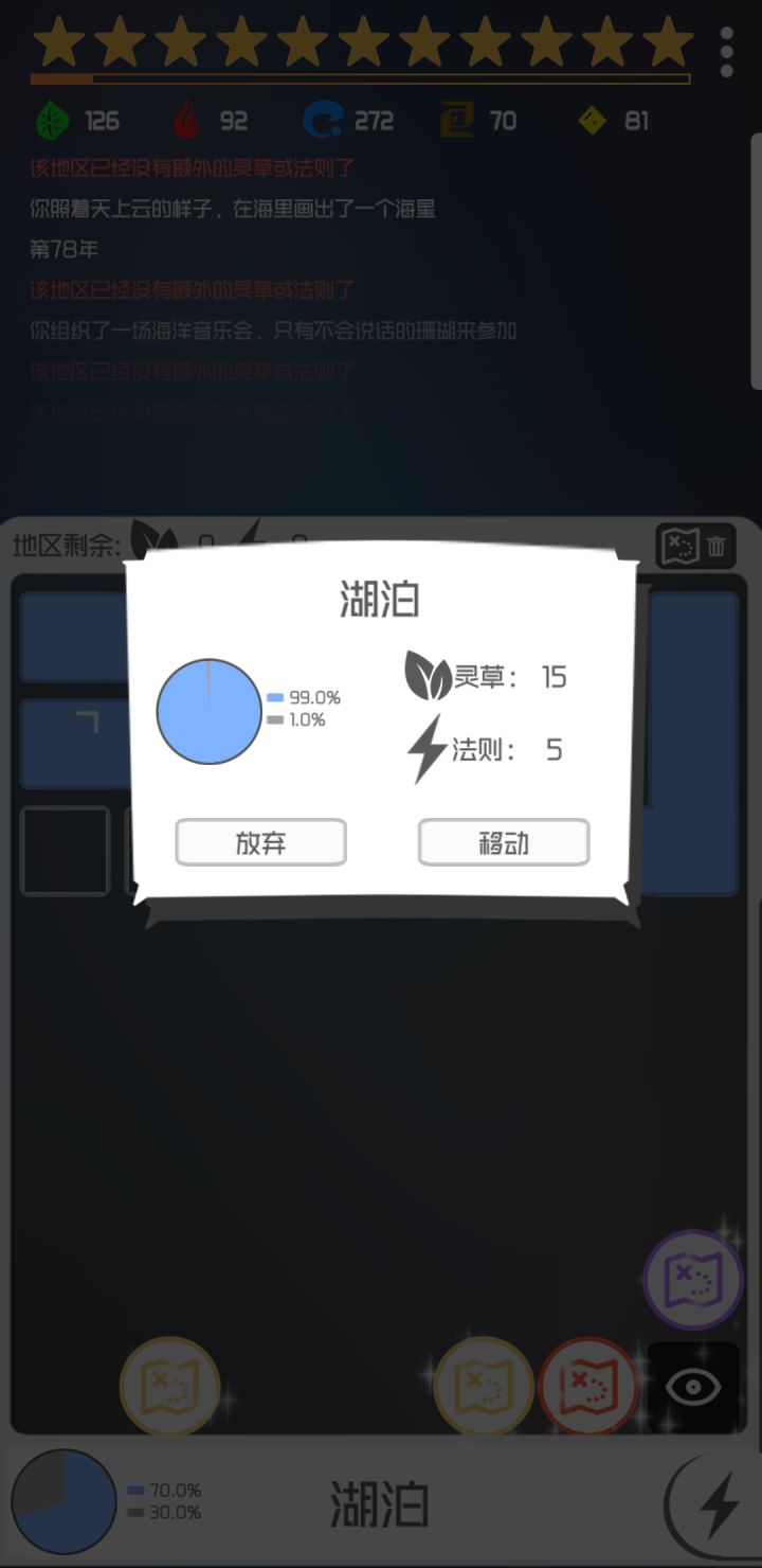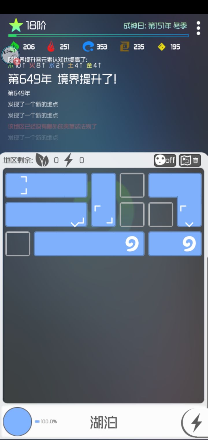 相信大家才打开这个游戏和我一样一脸懵,我就玩了一下午,虽然没玩到多少阶,但是有些建议和说明萌新看了至少可以有点头绪,第一次写这么长的攻略,麻烦点个赞,感谢。。1.五行就是界面上面金木水火土对应黄绿蓝红棕五种颜色,它们的数值就是你每消一个得的经验。2.地图地图的作用是当没有资源(闪电和树叶标志)时可以换另一个地图,等级越高的地图资源越多,地图上面的比例就是五种数值刷新的概率 3.闪电⚡闪