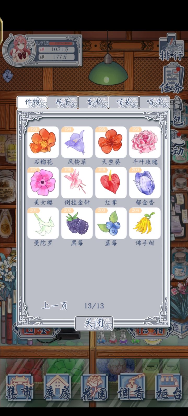 终于全部升金了,黑花瓣都攒了好多直接全价升级。丑丑的颜色也看顺眼了。之后土地佛系升级了,要的资源超多。没怎么做周六双倍,不然更快。现在还剩全香水特级和喵片收集。以及一个小小的目标,种完库存所有种子。那得慢慢来了。