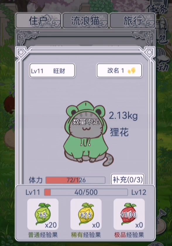 猫猫升级的时候身上的衣服一闪一闪