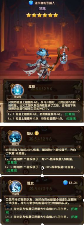 贝昆和佐拉同为火国英雄,能有效的帮助佐拉将溢出能量转移给主力输出进行攻击,星纹技能能快速完成蓝量积累,帮助其他英雄更快的释放大招,大招能直接帮输出英雄适放一次大招也很强力。