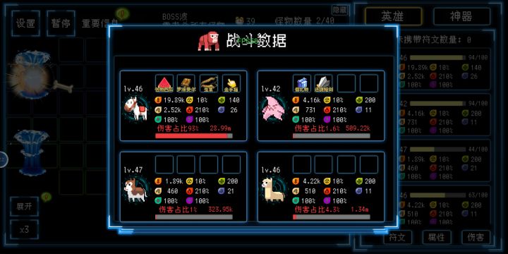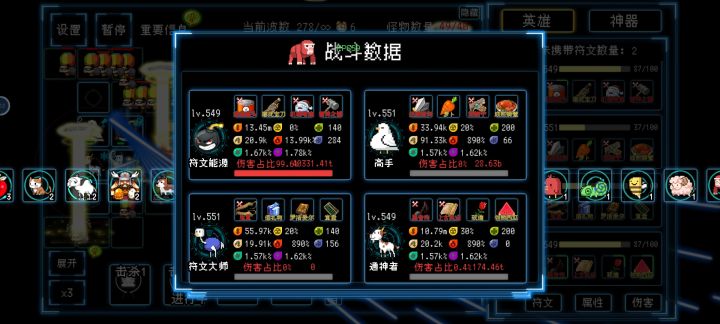 可惜养成暂且跟不上,12阶炸弹人大概不足以跟老玩家抗衡😂游戏里有很多的角色和符文神器可供选择,想跟各位分享一下我的“养猪流”。进游戏粗略看了一下之后,发现不少角色有为队友提供加成的效果,玩了几次完善之后,选定了