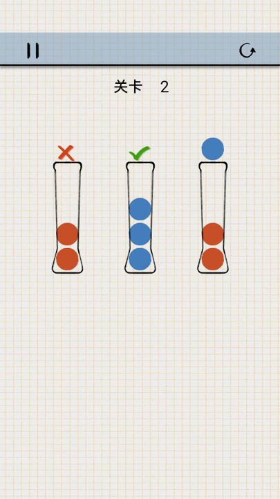 这是一款考验思维与逻辑的游戏,通过将颜色与球球相结合,对管子中的彩色球球进行分类,看似简单,但要精通也没那么容易噢~快来挑战你的逻辑思维的极限吧!