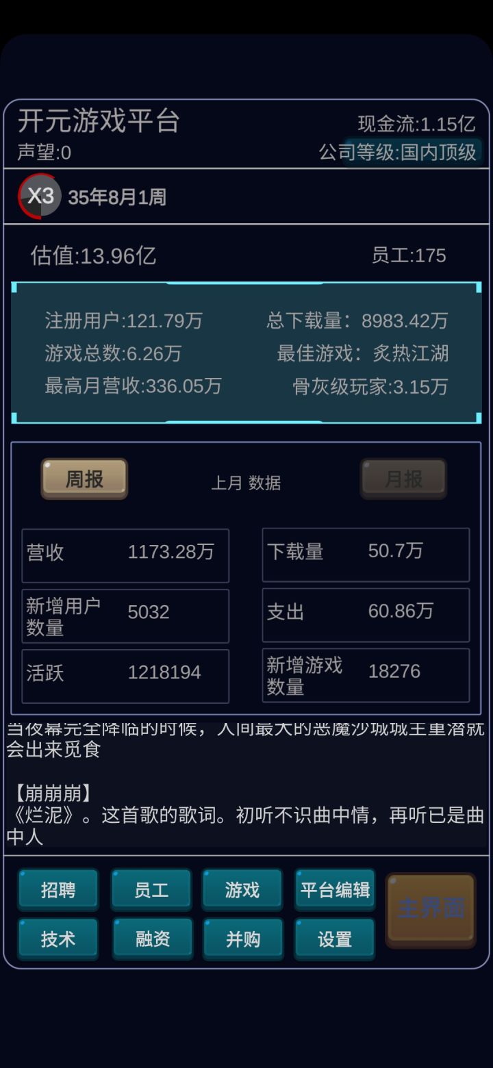 开始盈利。。。开局商务招几个s或者a 达到现象级就行了。。工作点不够就找e或者d 技术同样 工作点够用就行,然后就有广告的安排广告没有的就安排编辑推荐。融资一定要记得融资不然抗不过去的。融资选择有加成的还有占比少的技术优先提升市场分析,其他随意不要并购目前并没有发现那玩意有啥用。。我并购了两个什么都没有加