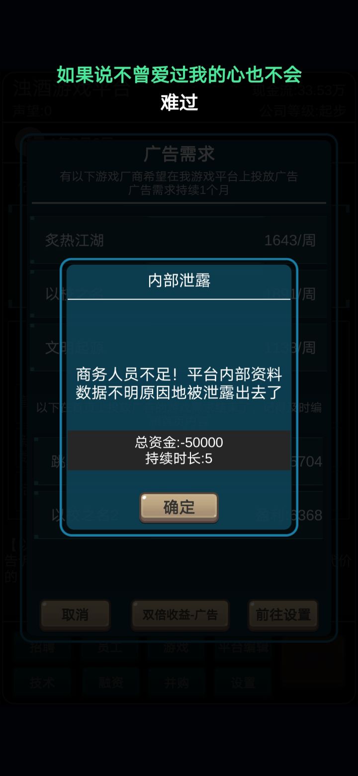 又重新开了一个存档,泄密是单纯为了坑资金的,商务人员唯一的作用就是没作用,我试了只要E和D的商务,发现轻量级游戏和现象级游戏的品质以及吸引力完全差别不大