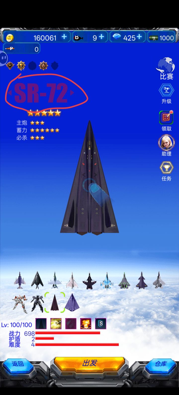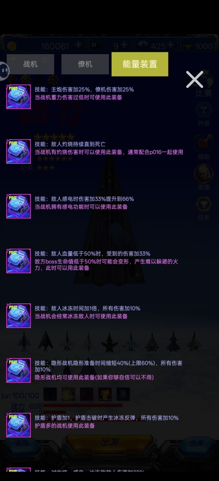 加点策略可以拼脑子过关,靠装备最大限度提升伤害能够让敌机刚出来就秒掉,不用靠躲子弹太苦了,点击任意战机可以看装备适用场合