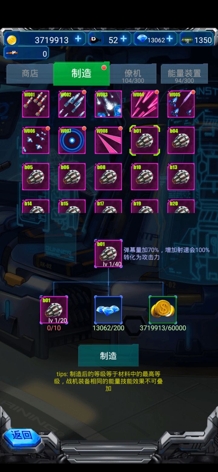 加点策略可以拼脑子过关,靠装备最大限度提升伤害能够让敌机刚出来就秒掉,不用靠躲子弹太苦了,点击任意战机可以看装备适用场合