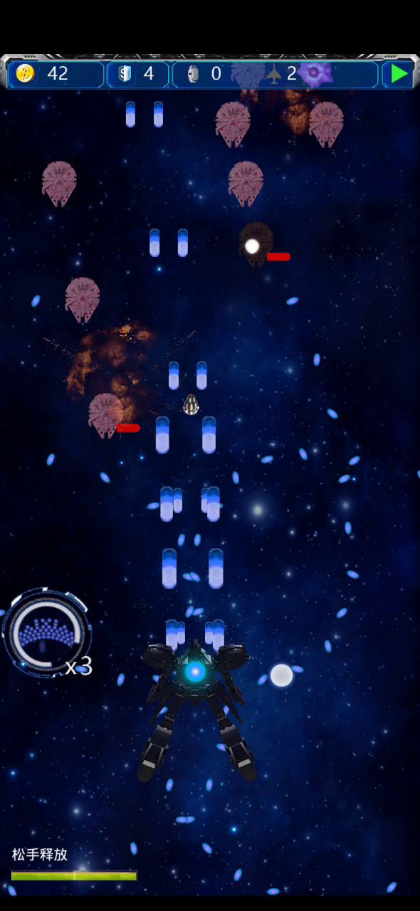 加点策略可以拼脑子过关,靠装备最大限度提升伤害能够让敌机刚出来就秒掉,不用靠躲子弹太苦了,点击任意战机可以看装备适用场合