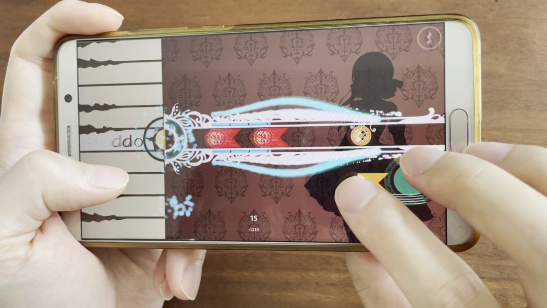 放桌上玩这种音游常见手法就不赘述了,这里推荐一个拿起来玩的姿势(有点PSP怪物猎人鹰爪手的意思∠( ᐛ 」∠)_