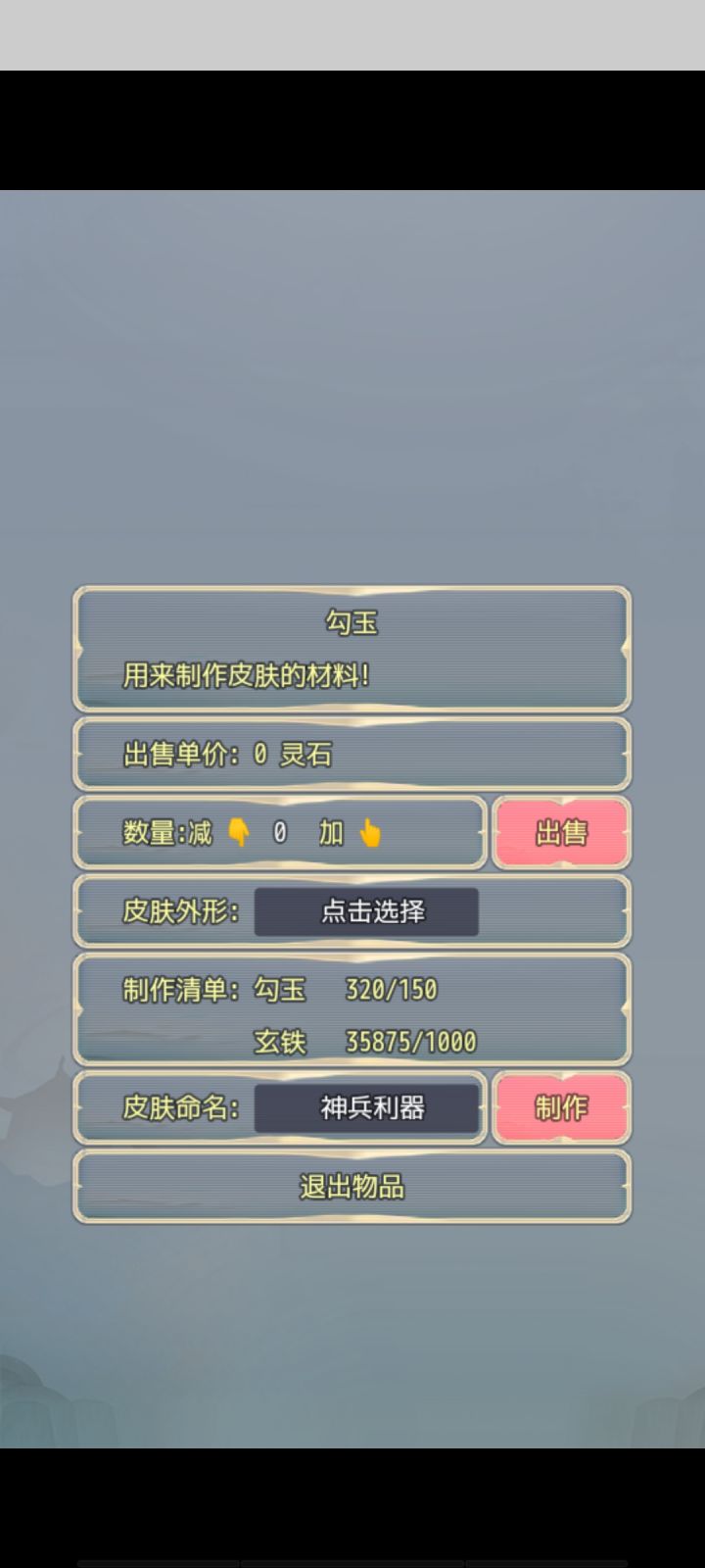 制作皮肤的主要道具为勾玉勾玉的获得方式为,界域心魔排名奖励,具体获得数值不再过多强调,可以在界域心魔篇查看制作方式:皮肤的制作方式与法宝相同,在背包中点击勾玉即可制作,制作材料为:勾玉x150+玄铁x1000目前皮肤外形有三种可选,分别是剑仙:蓬莱:万佛:皮肤外形没有任何限制,并不是说剑仙宗就一定要做剑仙的皮肤,也可以选择其他两种,皮肤外形不参与影响其他有关皮肤的操作制作好皮肤后,