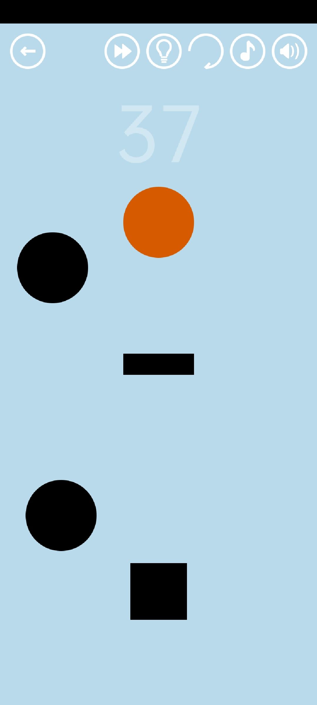 第三十一关:扶老黑球过马路,到了黄灯就把路灯拿下来再安回去 第三十二关:缓慢拖出小黑球 第三十三关:先长按两边黑块,再快速短按中间黑块 第三十四关:上下左右滑就完事了 第三十五关:用两个黑块把小球逼到墙角 第三十六关:把能互相填满的圈放在一组(基本就是穷举法) 第三十七关:把黑球放到如下位置,再连续点击黑块 第三十八关:先把小球拖到边上别被雨淋了,然后把💧拖到云彩里,把出来的⚡拖到小球里 第三十九