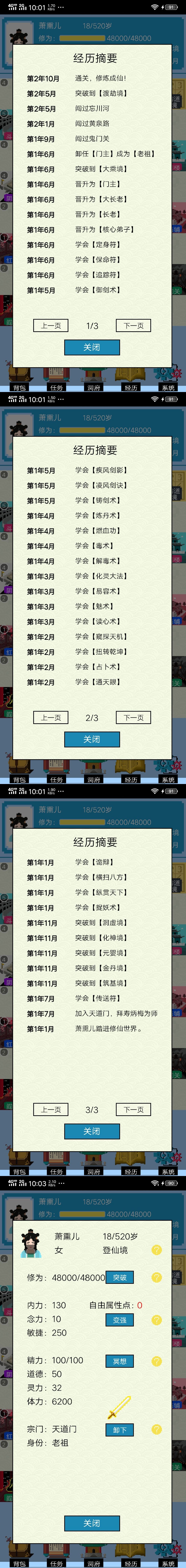 5、属性:内力=攻击,装备上剑攻击会提升(只在战斗页面可以装);念力=法力;敏捷=速度