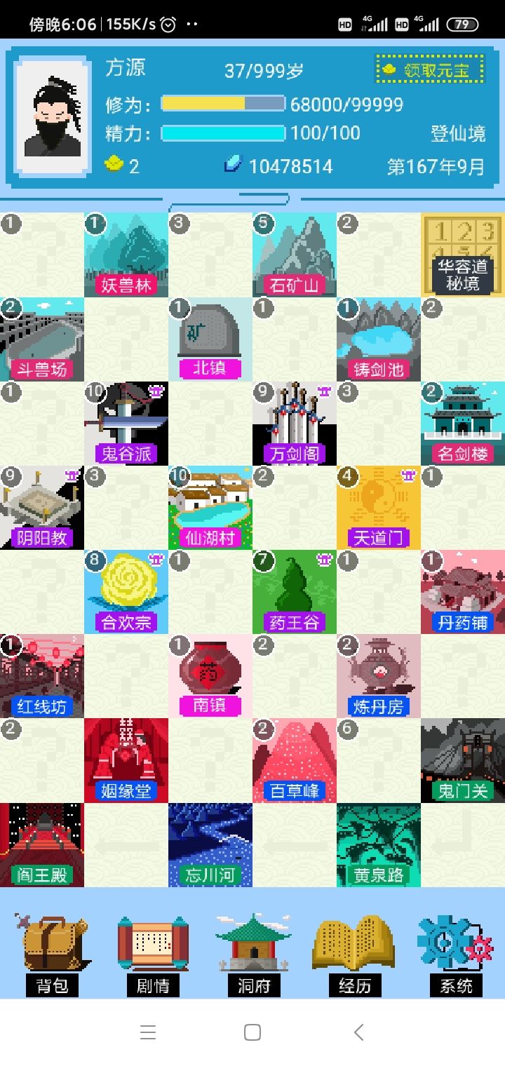 5.然后就开始升级大业。在背包使用化灵大法,用灵石修炼,修为满600