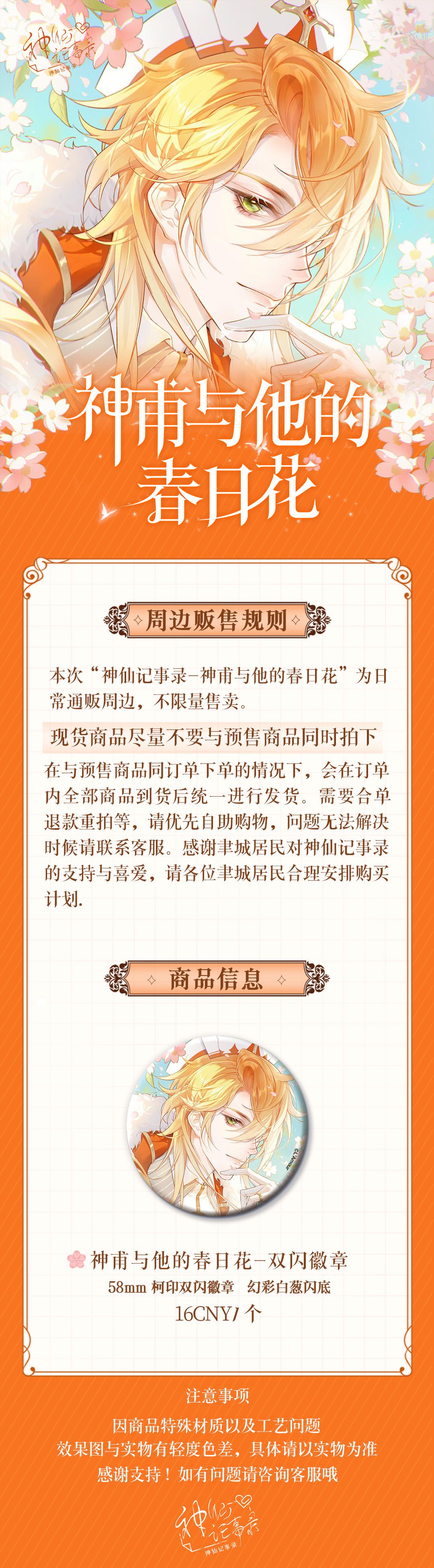【最新消息】 符德·【土地与他的小纸人】与司铎·【神甫与他的春日花】生日icon吧唧,将于9月10日晚在淘宝店铺与有赞商城开售。在本帖内参与评论活动,还可以抽取相关周边哦! ====================分割线================== 符德·【土地与他的小纸人】、司铎·【神甫与他的春日花】全新生日icon周边吧唧9月即将上架官方淘宝店铺【拉萌工作室】&微信有赞商城【拉萌工作室
