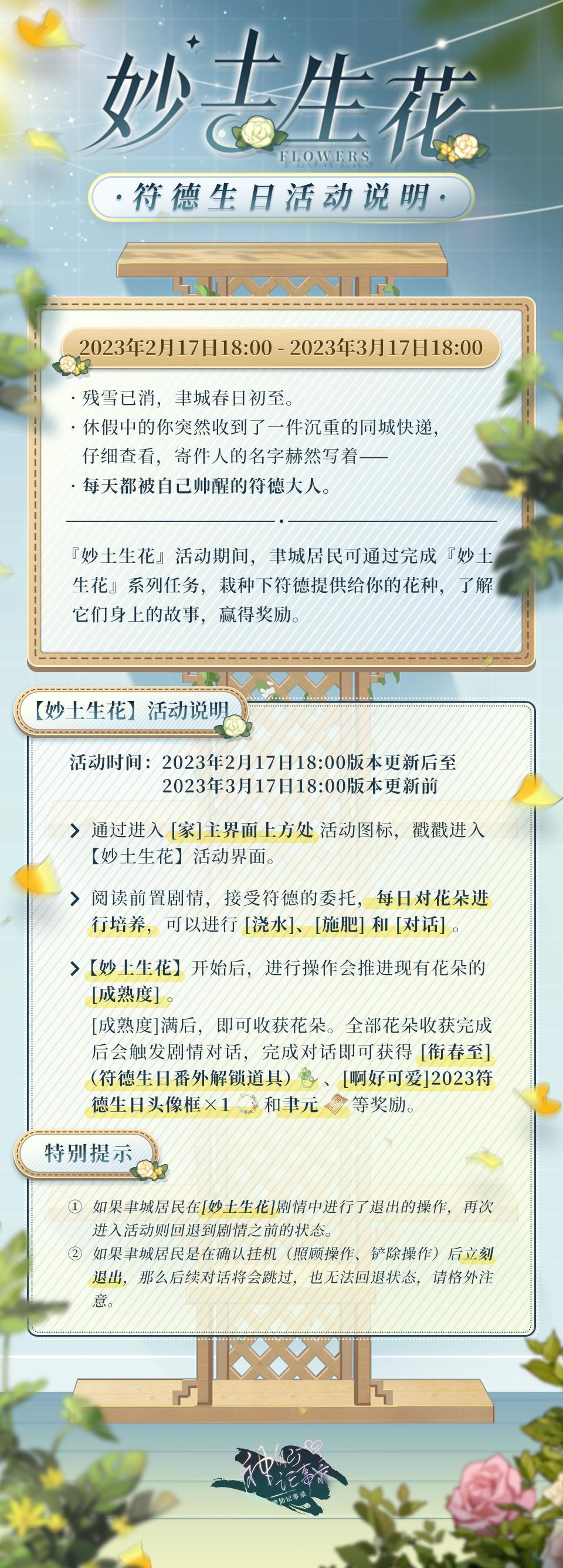 【神仙记事录】妙土生花·符德生日活动说明