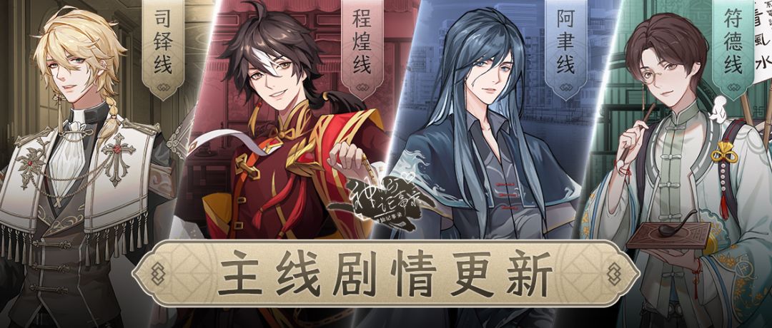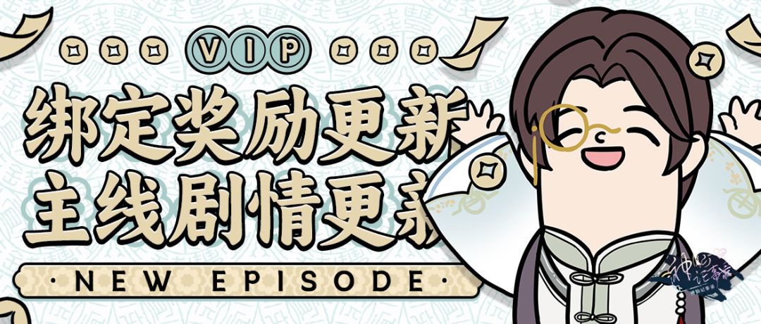 【高亮提示:主线分线!第八期VIP绑定奖励更新!】 本周《神仙记事录》更新 主线剧情(主线剧情&情报 iOS app同步更新!): 分线后主线剧情更新说明:主线剧情·个人线每周版本更新时更新三章,共计更新十二章。 主线章节(个人线): 程煌线:《拉扯》《此情此景》《阴司诸事》 阿聿线:《拉扯》《聿从何来》《河神娶亲》 符德线:《拉扯》《猜测》《回答》 司铎线:《拉扯》《笔记本的端倪