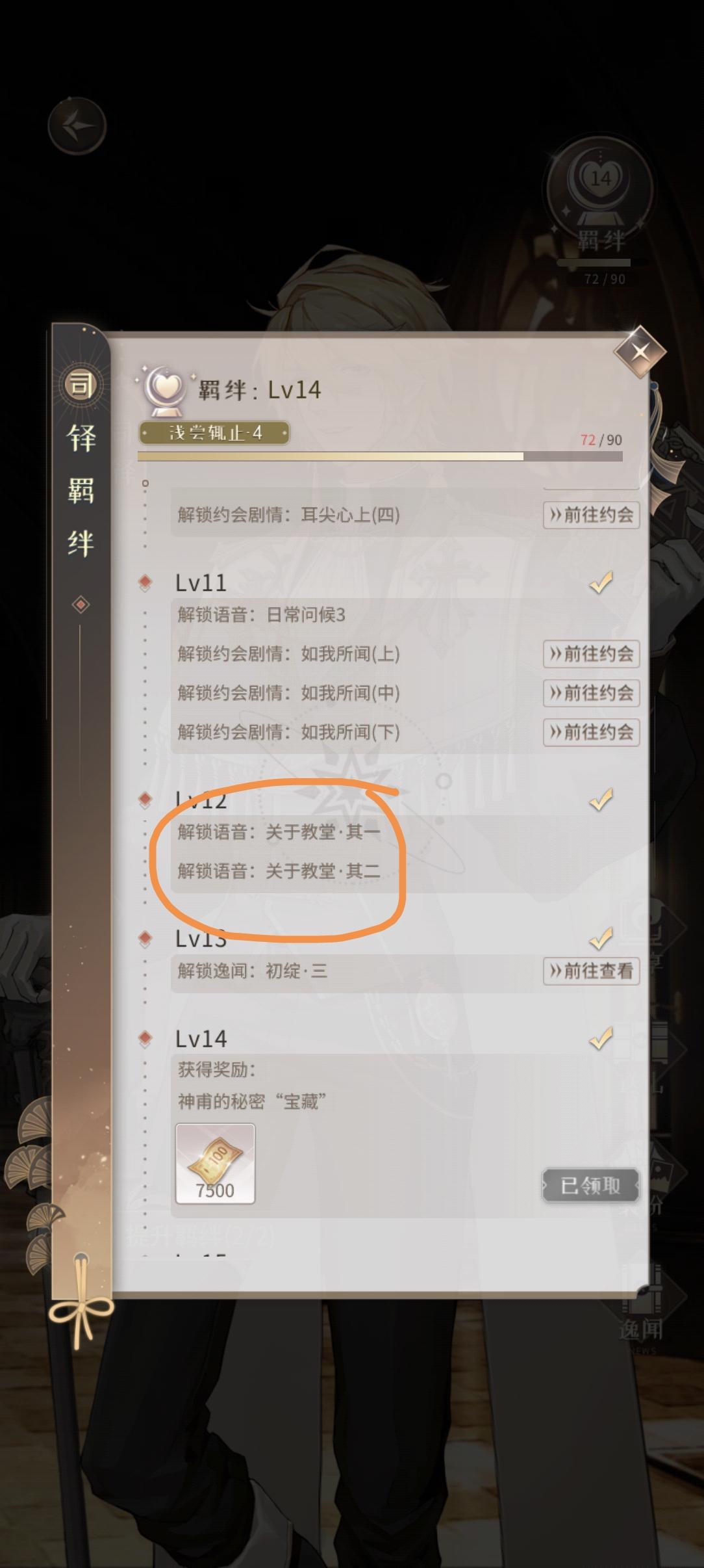 程煌:信鸽、盲盒开箱、瑜璟、再会、旅行打卡、扇面儿、宫灯长明、古玩新玩、古董拍卖会、消逝、聿城故事、团圆、文创活动、传统民俗、解惑、真假明辨 阿聿:老不为尊、万万不能、重要之物、迷路之犬、相片、失意人、水中游、求雨、守林人、天上圣母、上钩、河神大人、问渠、渔民祈愿、温暖的家、许愿河、何以为神、执念 司铎:商业洽谈、离家出走、抓娃娃、振翅之鸽、玫瑰点心、冤家路窄、勇敢前行、惊喜礼盒、纯净心灵、纯白典