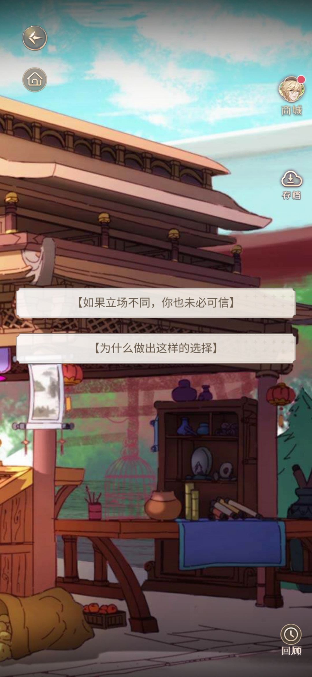 去古玩店后和程煌一起去灵恩禅院,遇见阿聿,走禅院剧情,后选择<跟着阿聿>或<跟着程煌>
