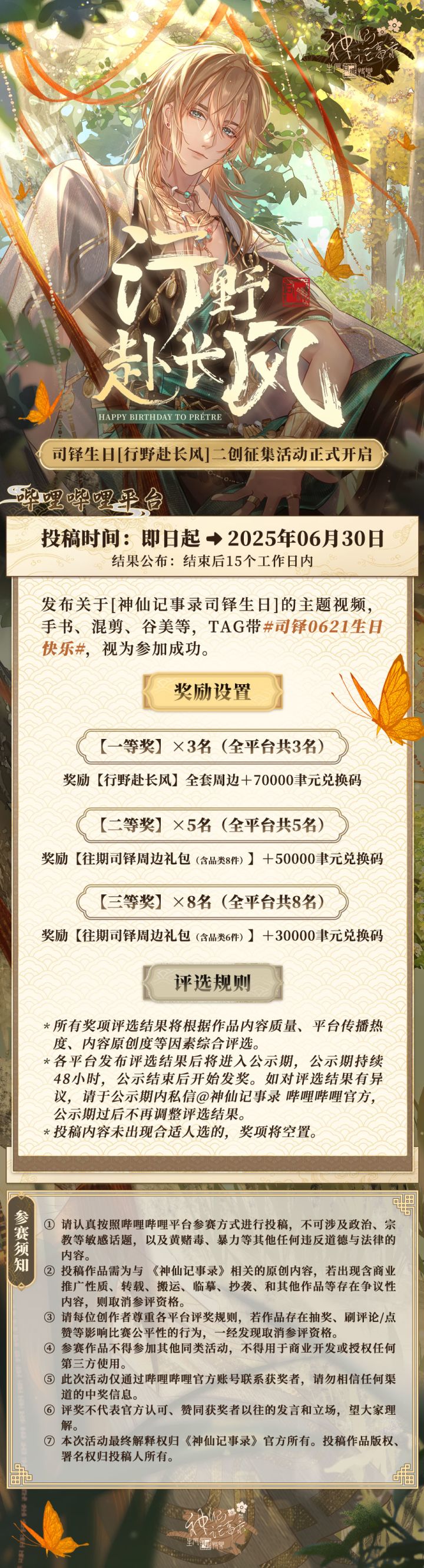 【神仙记事录】行野赴长风·司铎生日征集
