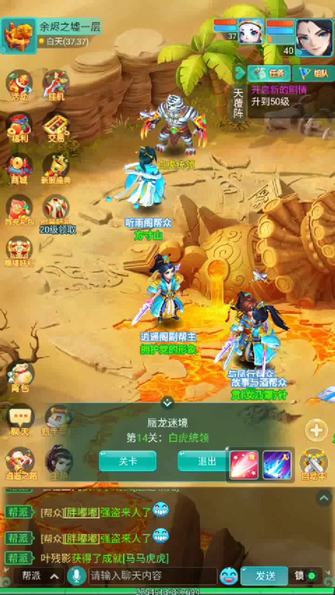 请配合视频观看。视频已上传B站,逍遥情缘游戏圈,逍遥情缘TAPTAP论坛 今天有几个比较重要的任务 下面为详细说明,这里是答案。已经会的可以不看 ( 一、霸王别姬过前两章 二、千年妖王击杀 三、等级达到50级(需要氪金购买7个双倍丹,不氪金明天达到即可) 四、关于50级装备(50级目标) 五、擂台争霸(50级目标) 六、蜃龙迷境打到18关左右(50级目标,在入世篇④) 七、地府还魂副本(50级目标